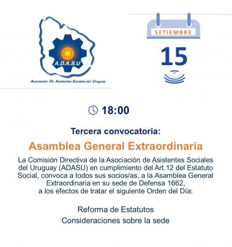 Viernes 15 de septiembre del 2023 18:00 horas en la sede (Defensa 1662).