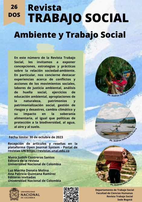 Convocatoria Volumen 26 nĂºmero 2 de la Revista Trabajo Social. Ambiente y Trabajo Social
