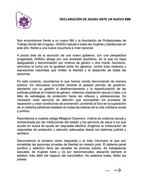 Declaración de ADASU 8M 2025
