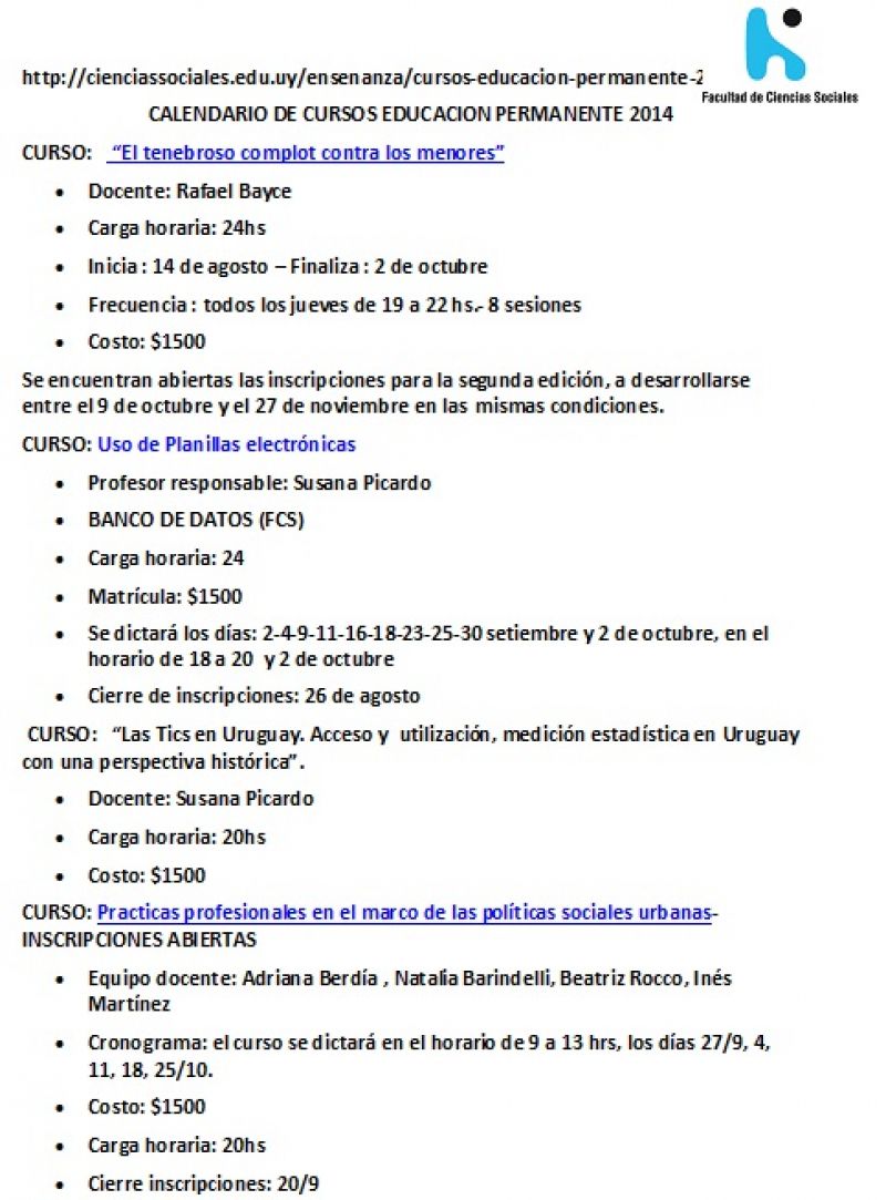 26 ago 2014 . CURSOS, POSGRADOS, MAESTRIAS : Facultad Ciencias Sociales.