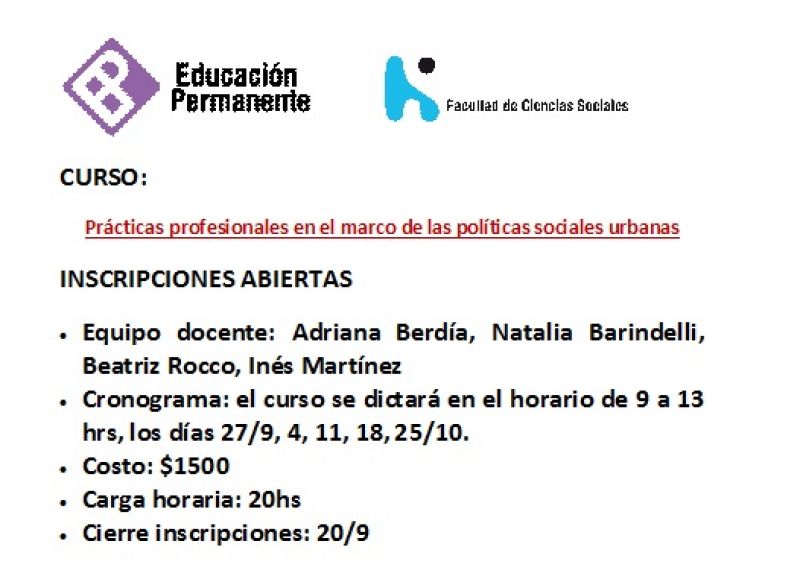 19 mar 2014 . : Informes e inscripciones: Bedelia de Posgrados de la FCS (Hall central), entre el 17 de marzo y el 30 de abril, de lunes a viernes en el horario de 10:30 a 12:30 y 17:30 a 19:30