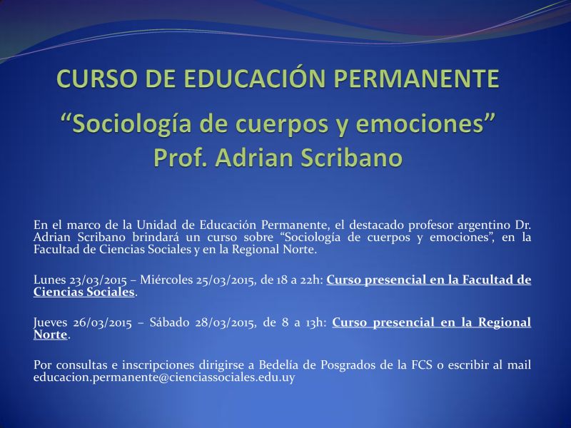 Curso de Educación Permanente "Sociología de cuerpos y emociones" a cargo del prof. Adrian Scribano