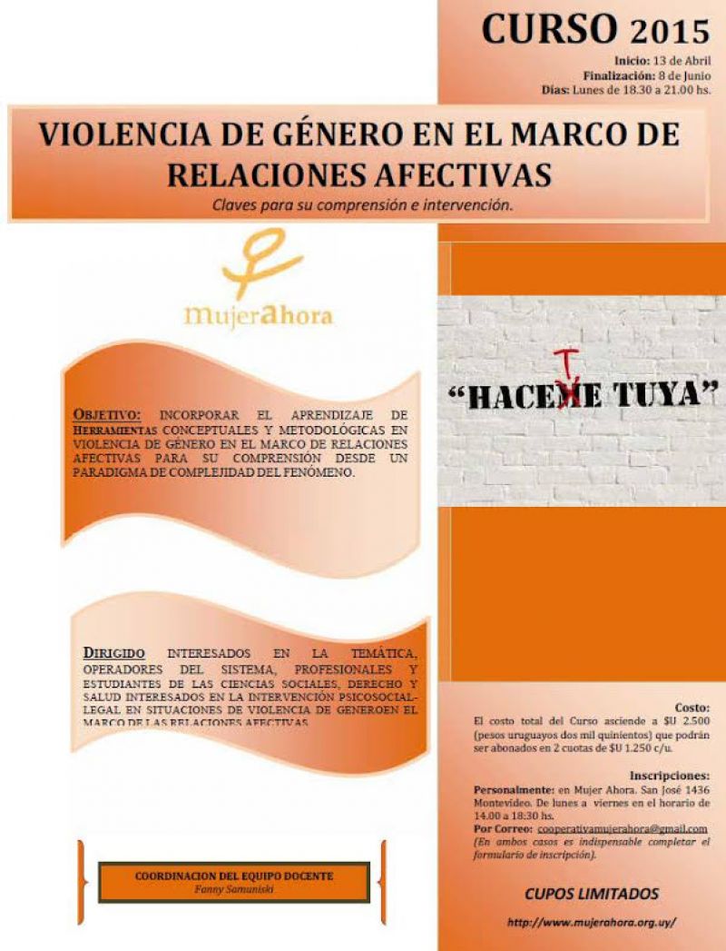 26 mar 2015 . CURSOS, POSGRADOS, MAESTRIAS : "Violencia de género en el marco de las Relaciones Afectivas". Mujer Ahora