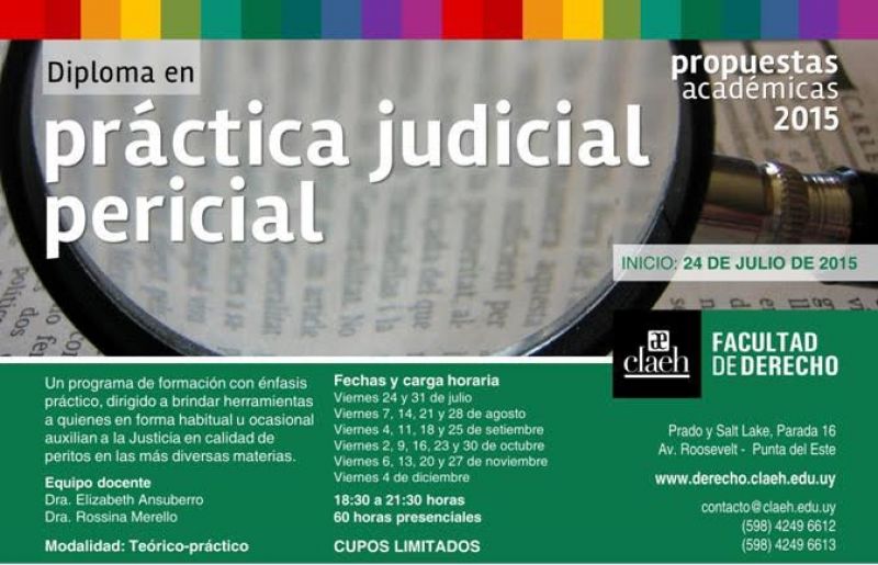 Diploma en Práctica judicial pericial. 5 jun 2015 . CURSOS, POSGRADOS, MAESTRIAS : CLAEH - Punta del Este, Maldonado