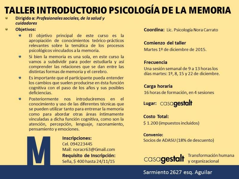 curso se dicta en CasaGestalt: Sarmiento 2627 esq. Aguilar. Contacto: 094 223 445 / 098 757 327. Contacto:gestaltcasa@gmail.com /