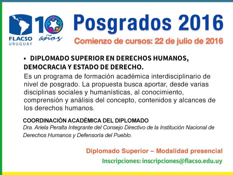 30% de descuento en Flacso 17 jul 2016 . CURSOS, POSGRADOS, MAESTRIAS : Compartimos con ustedes esta gran noticia: descuentos en curso Diploma en Derechos Humanos, Estado de Derecho y Democracia - FLACSO