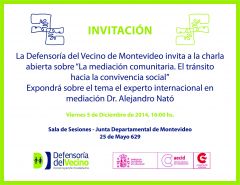 1 dic 2014 . : Invitación-Charla abierta sobre Mediación Comunitaria. Exposición a cargo de del experto en mediación Alejandro Nató. Invita Defensoría del vecino.