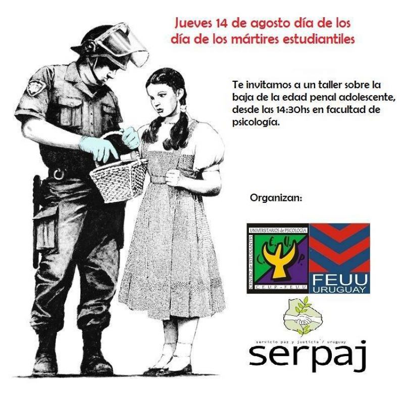 Taller sobre la baja de la edad de imputabilidad Facultad de Psicología Jueves 14 de agosto Hora 14.30 |