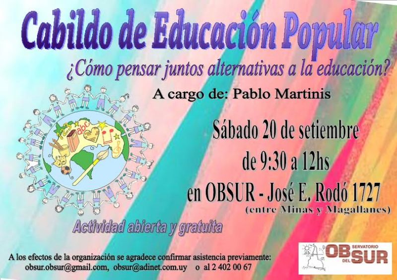 vinculadas a la educación en su concepto más amplio.Agradecemos que puedan ayudarnos en la difusión del evento. Los esperamos!!! Equipo de Obsur |