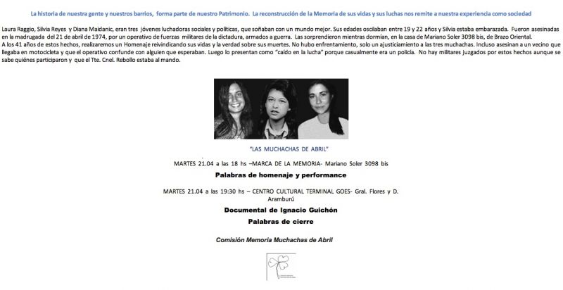 SEMINARIOS, JORNADAS, OTROS > Invitación Homenaje: "las Muchachas de Abril"
