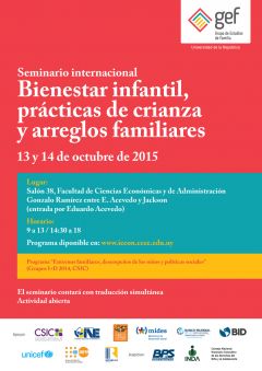 2 oct 2015 . : Los invitamos a participar del seminario internacional: "Bienestar infantil, prácticas de crianza y arreglos familiares" que se realizará los días 13 y 14 de octubre de 2015, en la Facultad de Ciencias Económicas y Administración.