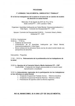 "PRIMERA JORNADA DE SALUD MENTAL, SINDICATOS Y TRABAJO"