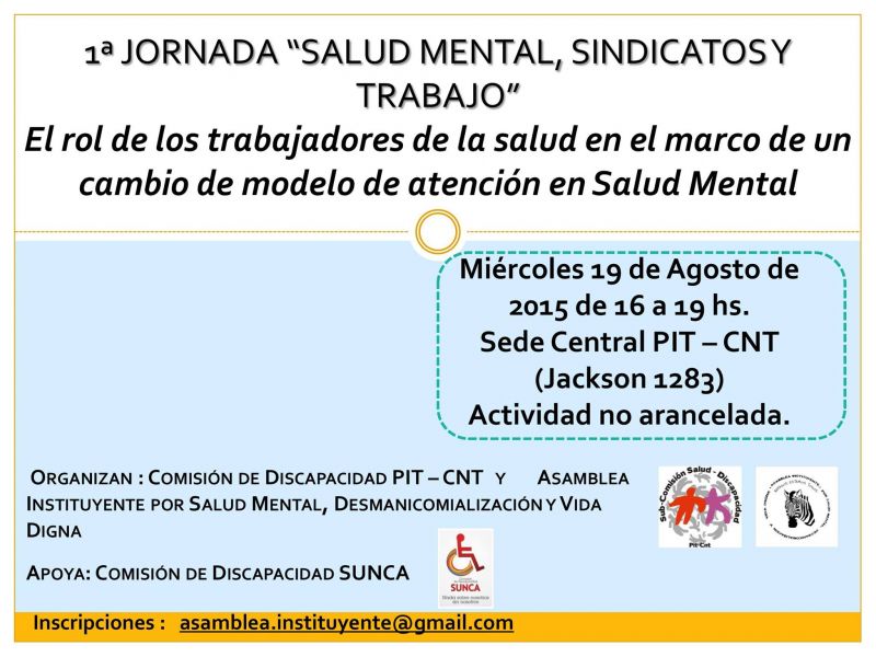 ASAMBLEA INSTITUYENTE POR SALUD MENTAL Y COMISIÓN DE DISCAPACIDAD DEL PIT-CNT INVITAN A PARTICIPAR DE: