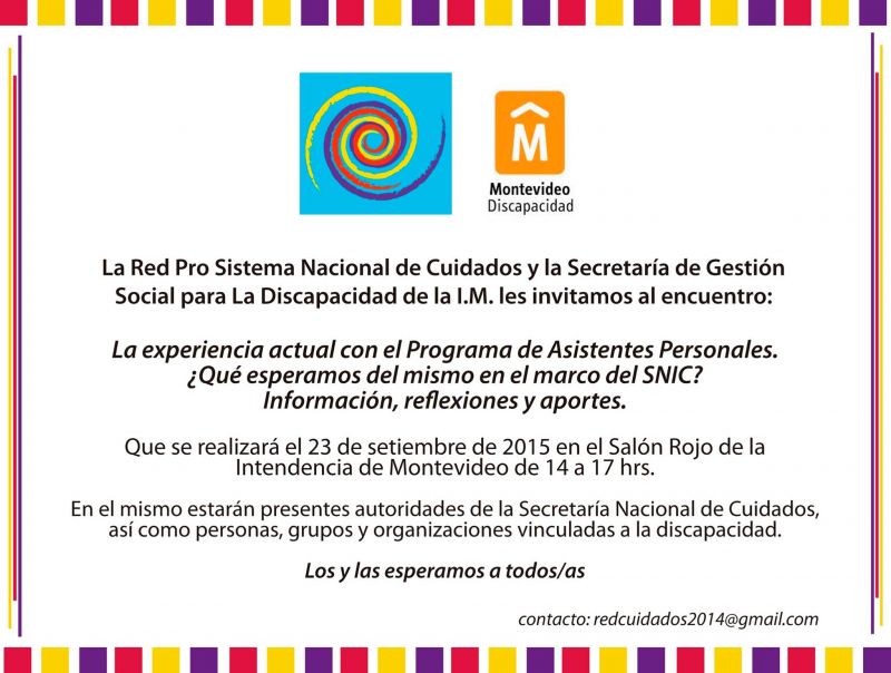 Encuentro SNIC Discapacidad 17 set 2015 . SEMINARIOS, JORNADAS, OTROS : Encuentro: La experiencia actual con el Programa de Asistentes Personales. ¿Qué esperamos del mismo en el marco del SNIC?