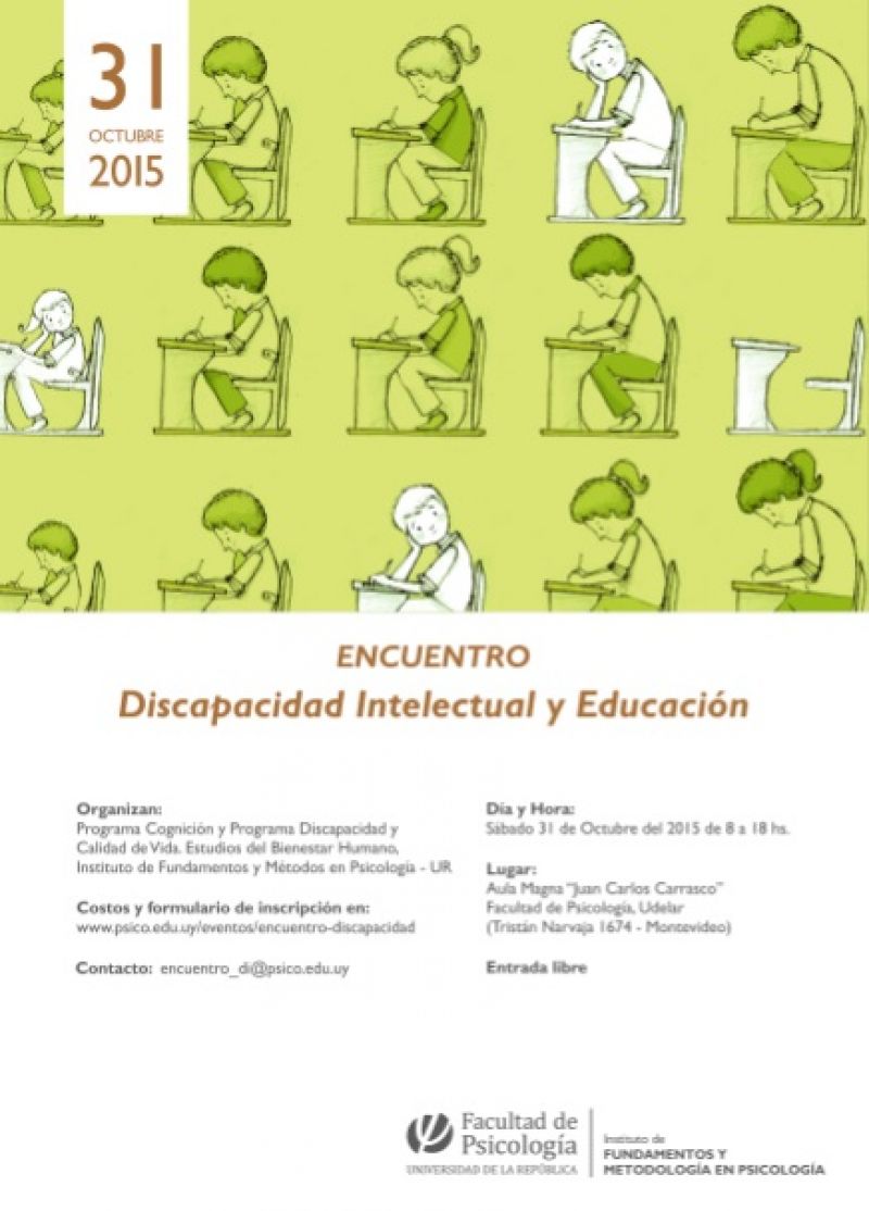 Encuentro Discapacidad Intelectual y Educación 21 oct 2015 . SEMINARIOS, JORNADAS, OTROS : Organiza: Instituto de Fundamentos y Métodos en Psicología de la Facultad de Psicología, UdelaR
