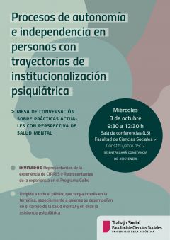 29 set 2018 . : "Procesos de autonomía e independencia en personas con trayectorias de institucionalización psiquiátrica"