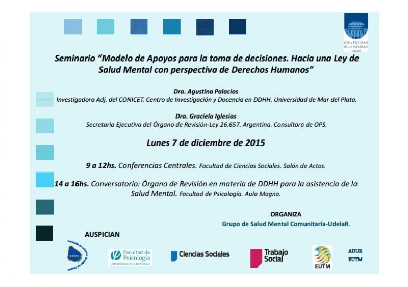 hacia una Ley de Salud Mental desmanicomializante". El Grupo Académico de Trabajo en Salud Mental Comunitaria – UdelaR organiza esta