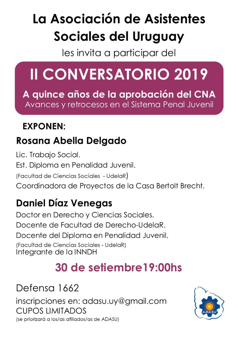Est. Diploma en Penalidad Juvenil. Facultad de Ciencias Sociales-UdelaR. Coordinadora de Proyectos de la Casa Bertolt Brecht. Daniel Díaz Venegas. Doctor en Derecho y