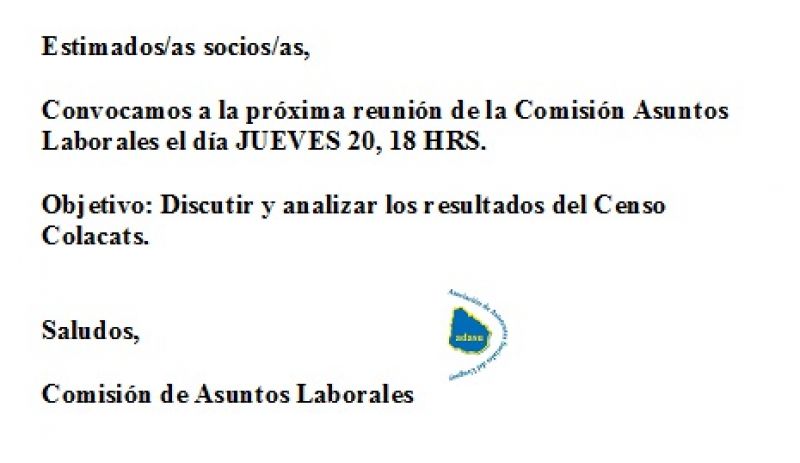 NOTICIAS DE AUTORIDADES, COMISIONES DE TRABAJO Y FILIALES > Próxima reunión Com. asuntos laborales.