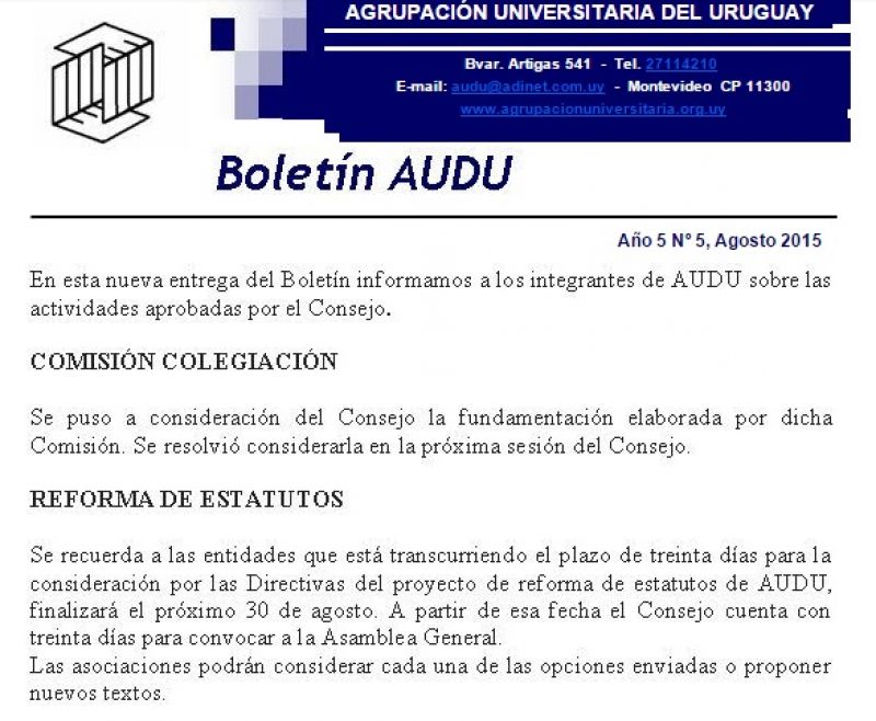 OTRAS NOTICIAS > Boletin AUDU Nº 5
