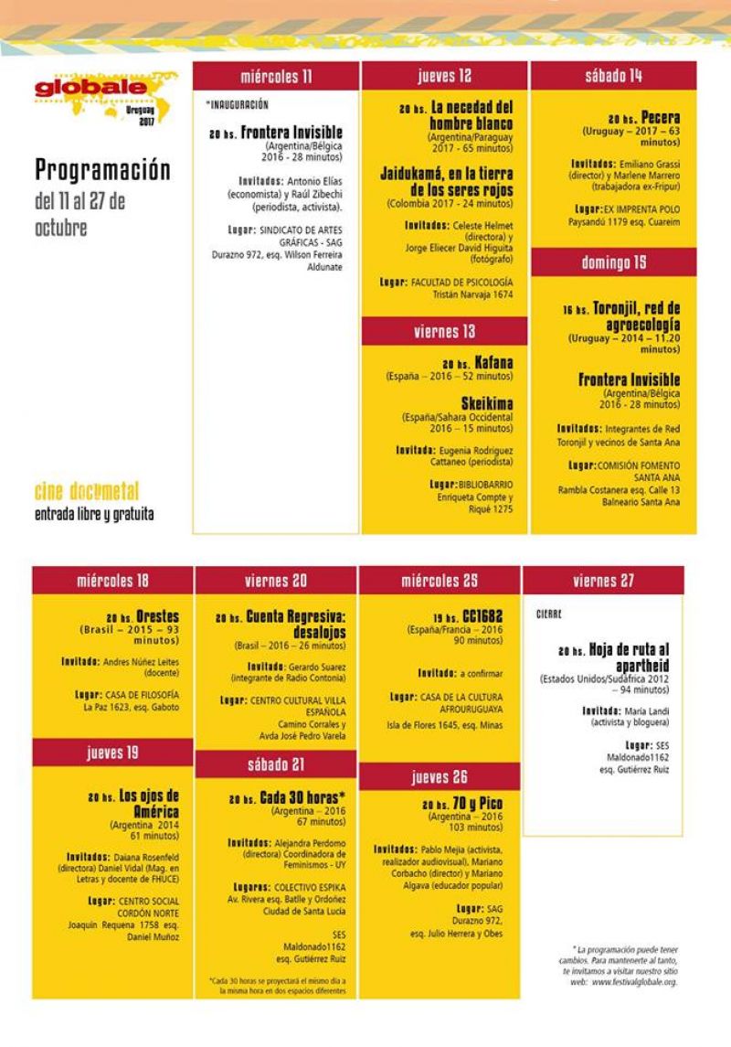 5 oct 2017 . OTRAS NOTICIAS : Del 11 al 27 de octubre se desarrollará en Uruguay el Festival Globale. |